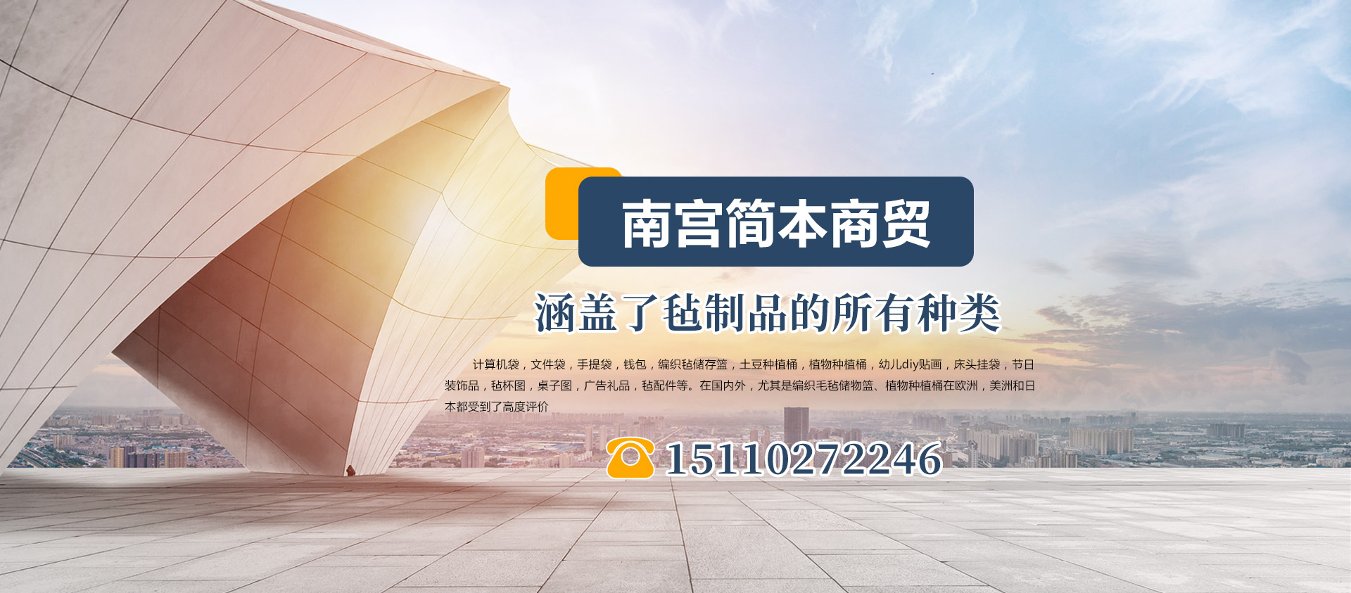 南宮簡(jiǎn)本商貿(mào)有限公司位于素有“毛氈之都”美譽(yù)的河北省邢臺(tái)南宮市,是一家集設(shè)計(jì)研發(fā)、生產(chǎn)加工、銷(xiāo)售貿(mào)易為一體的綜合型企業(yè)。公司擁有設(shè)備齊全的8000平方米的工廠(chǎng)和2000平方米的綜合辦公大樓以及寬敞的員工食堂?,F(xiàn)有員工120多人,其中管理和設(shè)計(jì)專(zhuān)業(yè)人才占20%。公司以先進(jìn)的技術(shù)設(shè)備,精湛的生產(chǎn)工藝,優(yōu)良的產(chǎn)品質(zhì)量、專(zhuān)業(yè)的技術(shù)人員,高素質(zhì)的業(yè)務(wù)團(tuán)隊(duì)為國(guó)內(nèi)外客戶(hù)提供優(yōu)質(zhì)高效的服務(wù),贏(yíng)得了國(guó)內(nèi)外客戶(hù)的廣泛贊譽(yù)。
